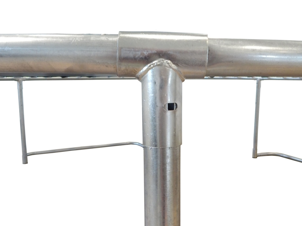 - Külső védőhálóval szerelt kivitel, hosszú ,extra stabil hálótartó oszloppal és védőhálóval, kétpontos bilincses oszlop rögzítéssel.