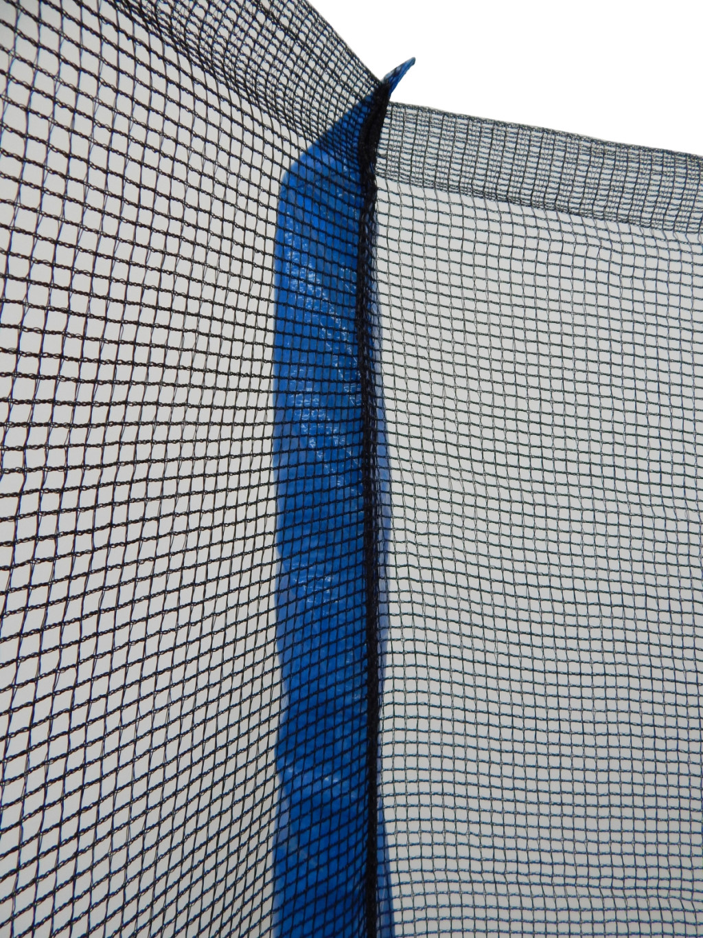A trambulin rugóvédő szivacsa a keret felett megerősített, a teljes szélességben mért 15mm vastagságon felül a keret fölé eső részen + 6mm vastagsággal vastagabb, így ott a teljes vastagság 21mm.